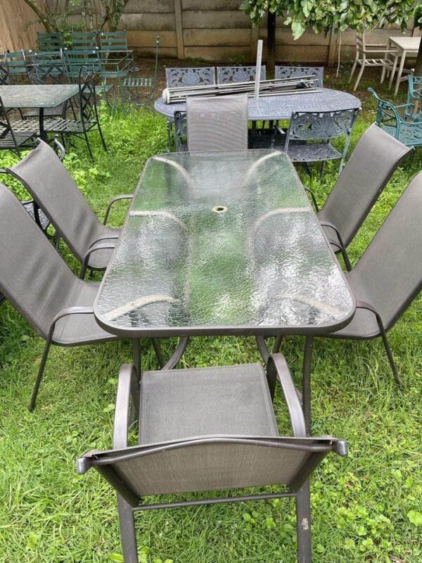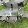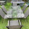 6 seater aluminium patio set 1x table with tempered glass top 6x aluminium with textilene chairs