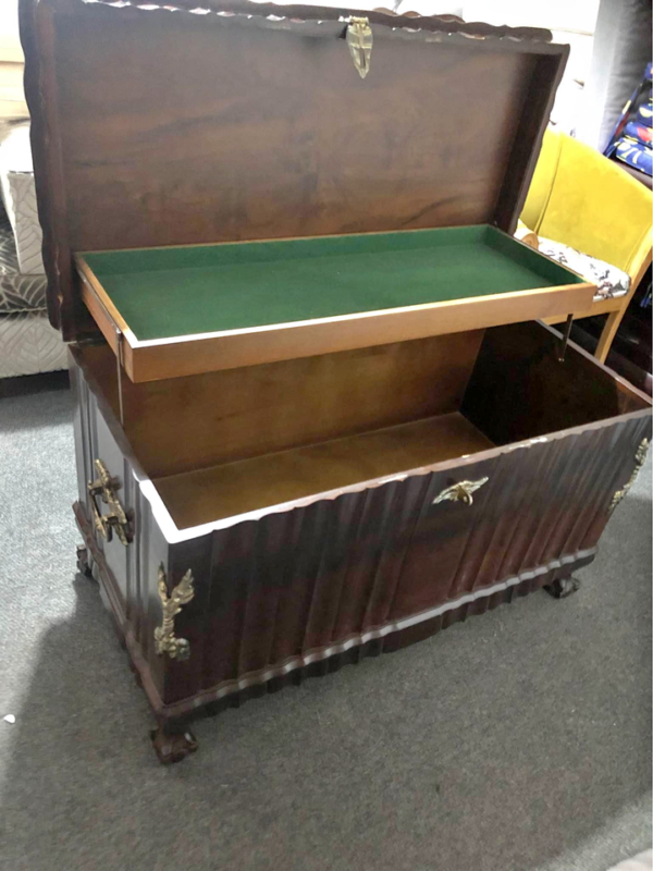 Beautiful vintage ball and claw kist with brass details.