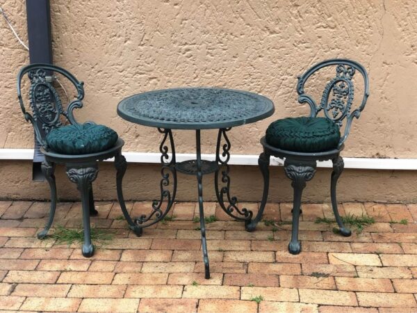 Beautiful cast iron bistro set . Quality weatherproof set great for outdoor use