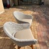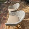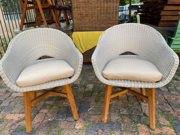 Beautiful set of all weather wicker chairs with wooden base.