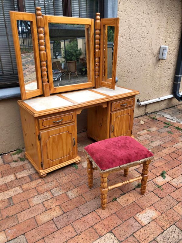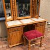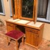 Solid oak dressing table with stool. Tiled table top. L140x W49x H 74cm