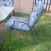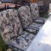 Beautifully forged set of 2 heavy wrought iron lounge chairs with cushions and side table
