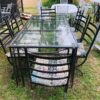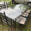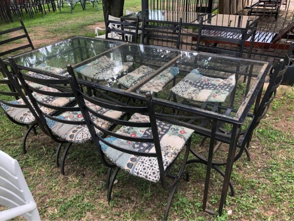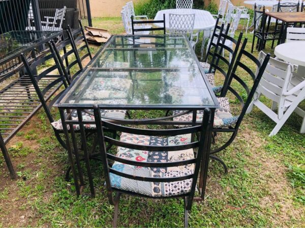 Wrought iron 8 seater table with glass top