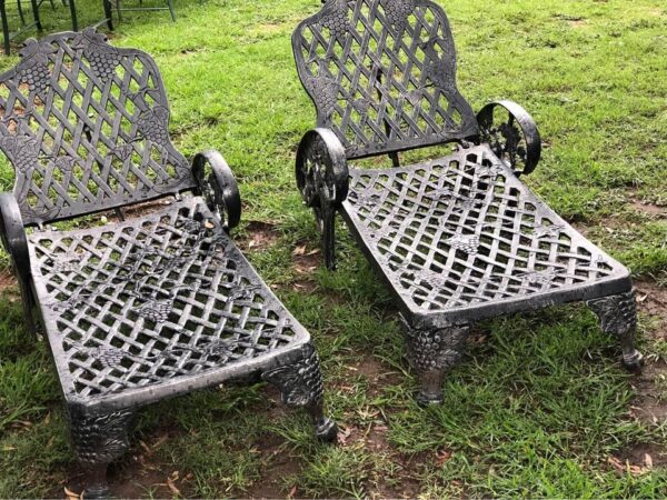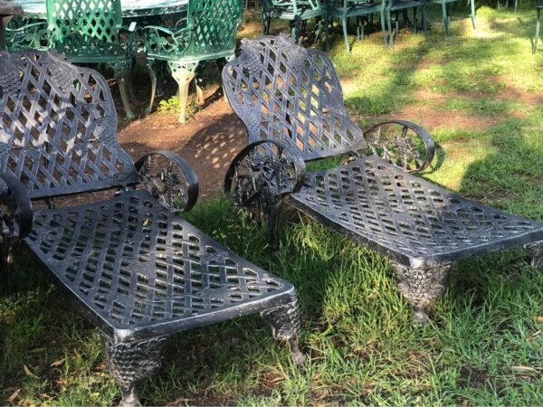 Beautiful solid pair of cast iron pool loungers.