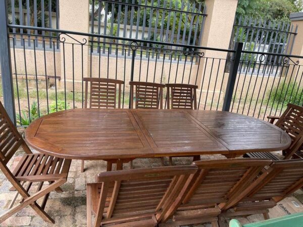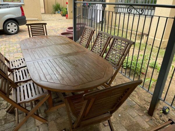 Solid wooden 8 seater patio set.