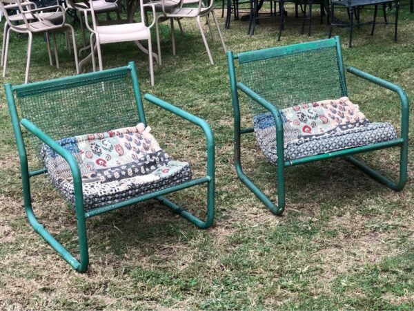 Pair of garden metal lounge chairs